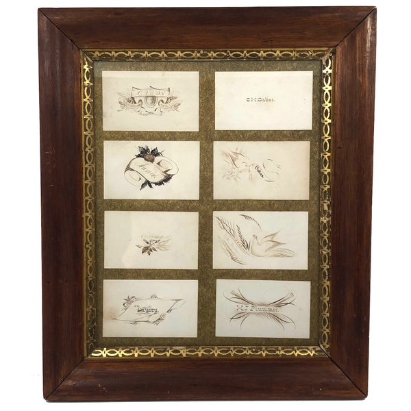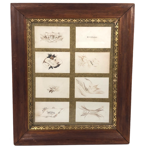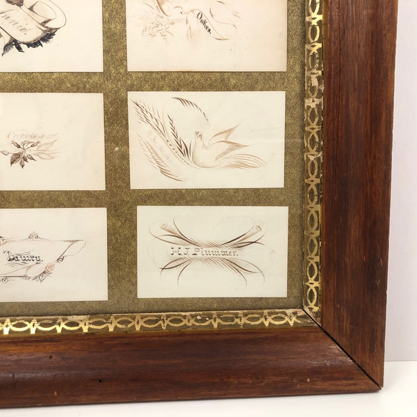 Rare Spencerian Calling Card Salesman Samples in Presumed Original Frame