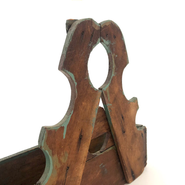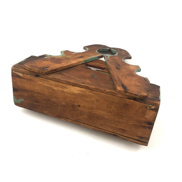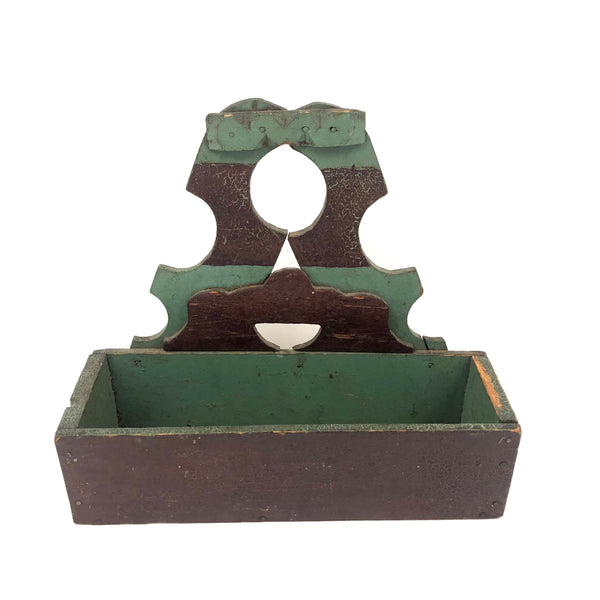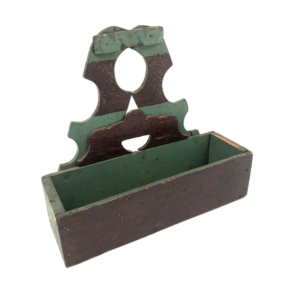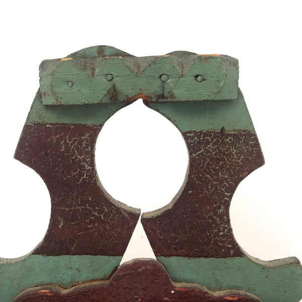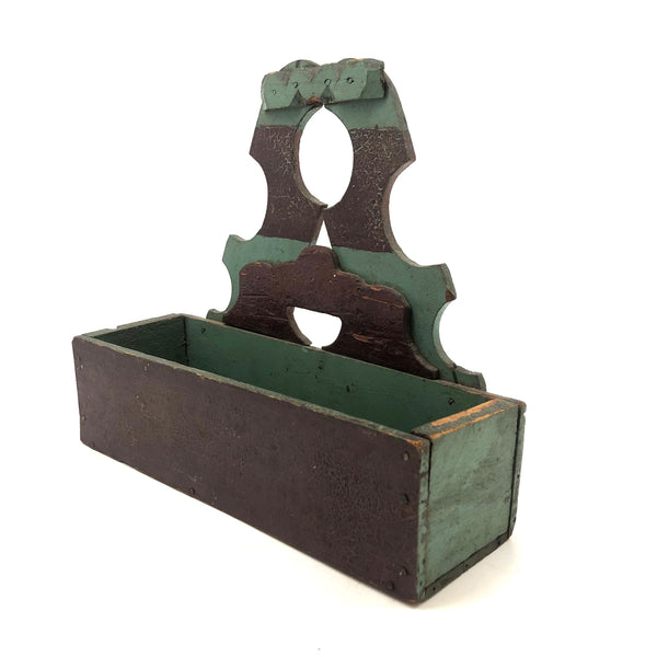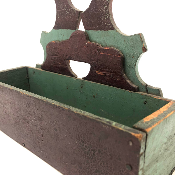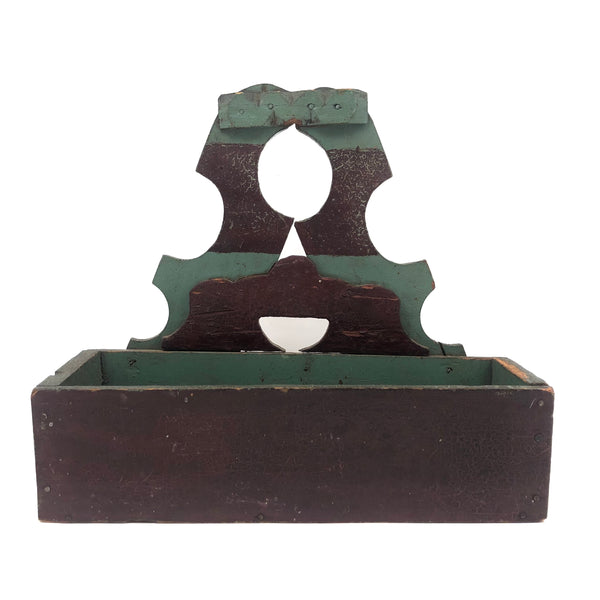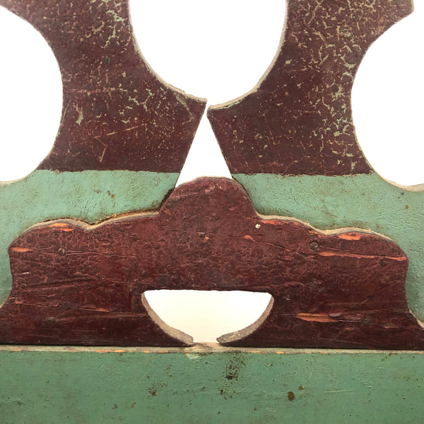 Found in Berks County, PA, and I'd bet that's where it originated, or at least nearby, early 20th c. I believe; Great form, great striped paint job, and one little chip carved flourish along the top. Nicely aged paint, very sweet.