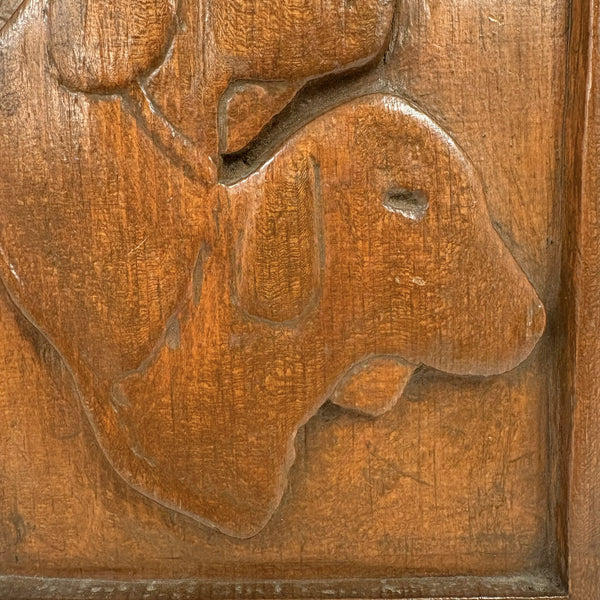 There's just a gentleness about this carving I really like. Feels like Gordon Polison, who signed his name to the back on April 17, 1947, felt a lot of love for these dogs. With one of them also looking kind of like a lamb. I'd guess a school project. A tender thing.