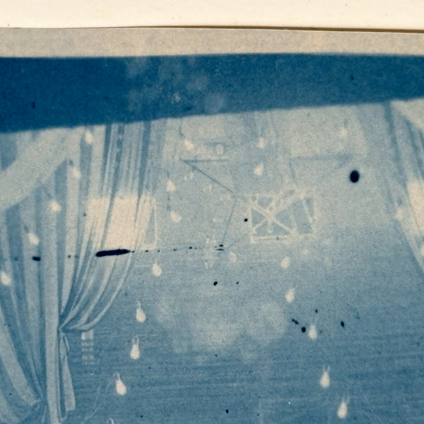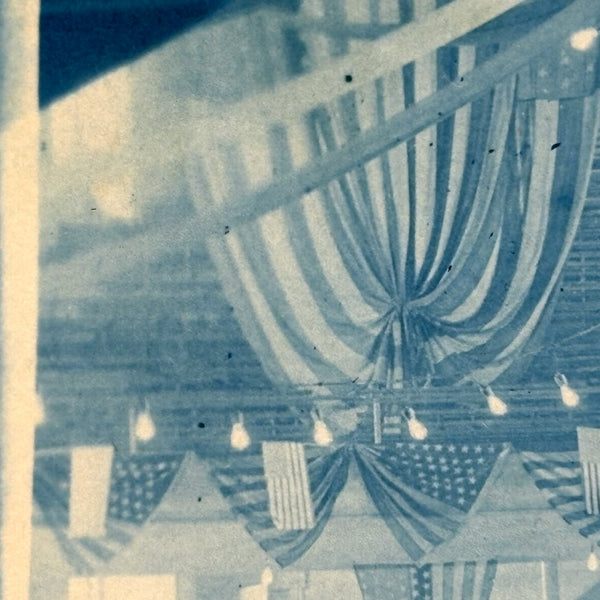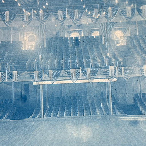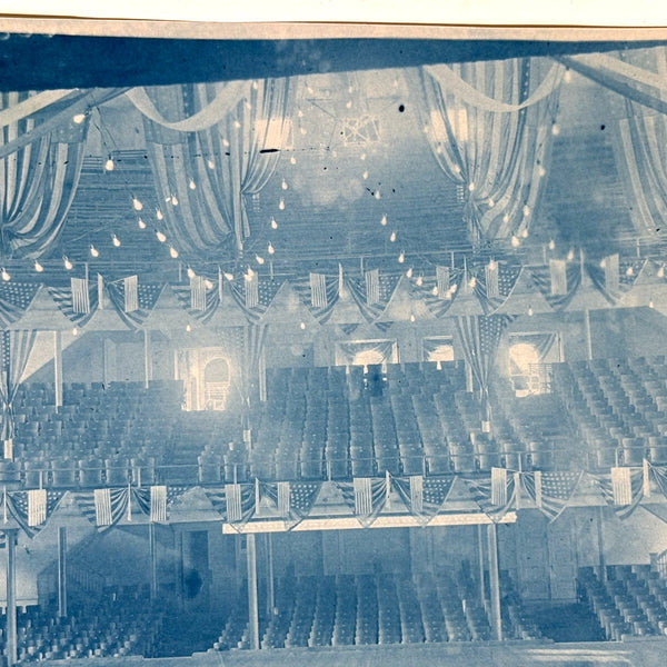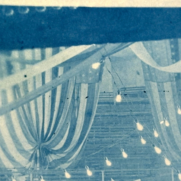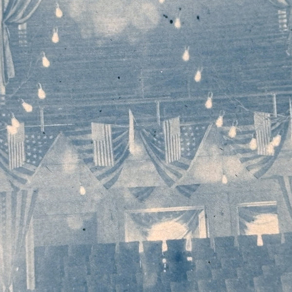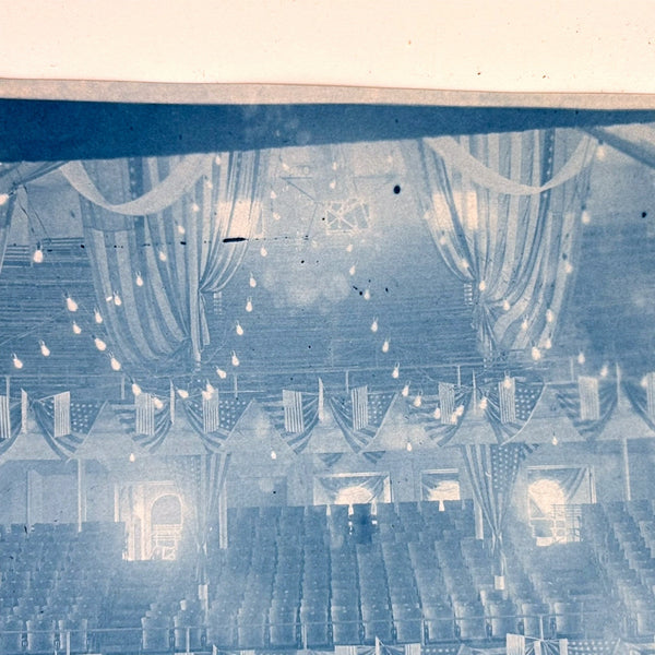 Quite an unusual one, a late 19th-very early 20th c. cyanotype, which I know came out of a Los Angeles estate. I've recently been looking at old photographs of empty spaces/sets--like a rare photobooth photo absent a person, which I really coveted--and this feels akin to me; a view from the stage of an empty theatre. All about stage setting, and anticipation, and absence, too. With these elaborately draped stars and stripes banners everywhere, and beautiful strings of crisscrossing bulb lights, sure feels like a political rally waiting to happen--and now like a poignant portrait of American democracy having the left the room.