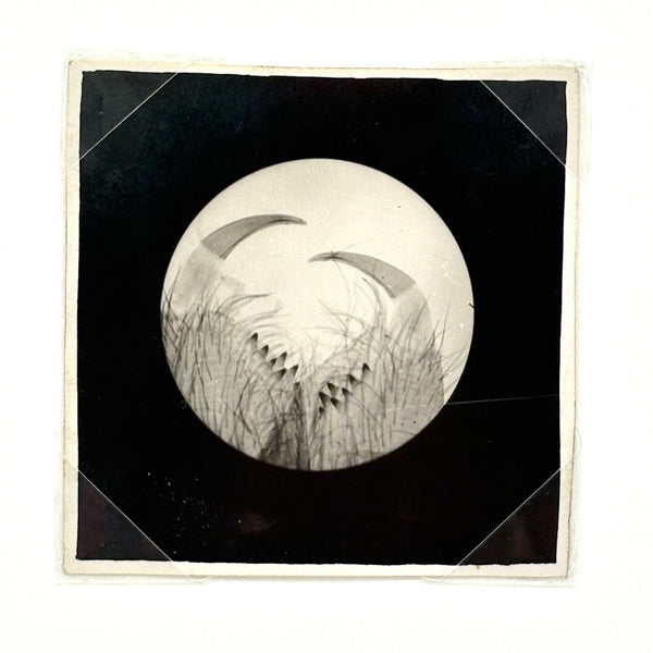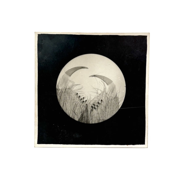 This is a very small photo--a micrograph I believe, shot through a microscope--just over 2"x 2", which to me is just right the right scale, as one wants to get close and peer into it! I'm guessing a much magnified view of the the pincers of an insect, with tiny hairs all around, but the identification of the subject is to my mind far less important than the formal qualities of the image, and this marvelously evocative pinching/grabbing gesture: a micro view that feels equally macro, seeming the very essence and distillation of the universal instincts to claw.