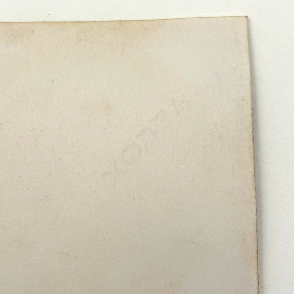 2 1/8" x 2 1/8", very good condition, glossy print on velox paper. I want to see this in a simple frame with a big white mount around it. One very fine white line visible running near horizontal left center.