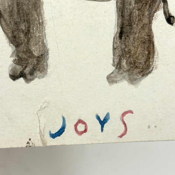 5 1/2" x 3 1/2". Watercolor on card (the yellow areas are watercolor too.) One small tear just left of the J in Joys, otherwise very good condition.